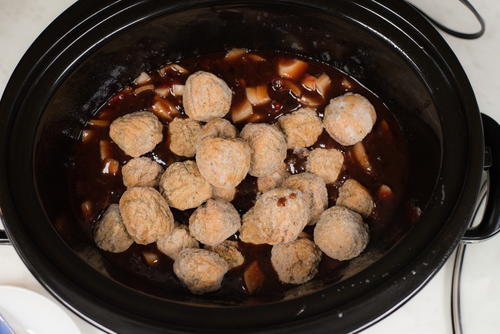 Add meatballs to slow cooker and stir until meatballs are coated.